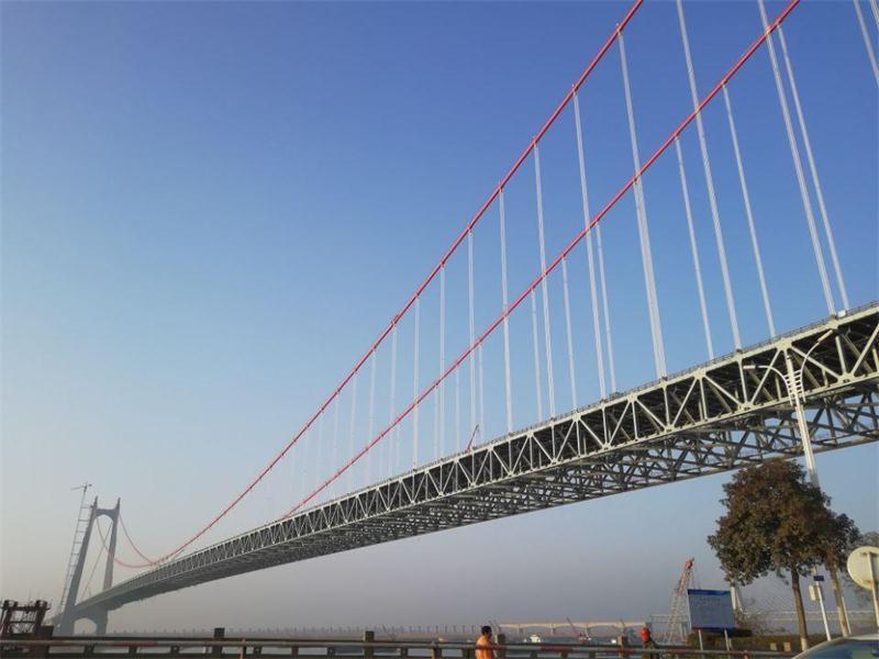 大岳高速洞庭湖大橋主跨1480米,是目前排名世界第二、國(guó)內(nèi)第一的大跨徑鋼桁加勁梁懸索橋。截止目前,大橋技術(shù)成果已獲中國(guó)公路學(xué)會(huì)科學(xué)技術(shù)二等獎(jiǎng)1項(xiàng)、發(fā)明專(zhuān)利3項(xiàng)、公路工程工法2項(xiàng)、省級(jí)工法7項(xiàng);大橋工程質(zhì)量已獲全國(guó)省優(yōu)秀質(zhì)量管理小組、湖南省平安工地、湖南省新技術(shù)應(yīng)用示范工程、湖南省優(yōu)質(zhì)工程等榮譽(yù)。