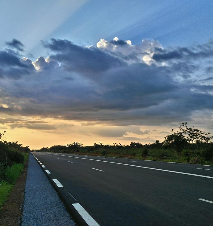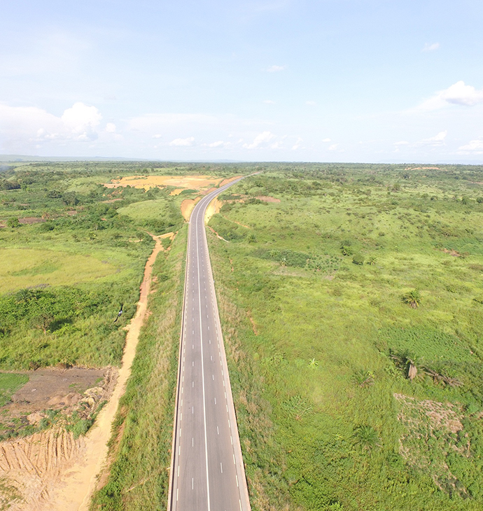 剛果(布)國(guó)家1號(hào)公路,南起該國(guó)經(jīng)濟(jì)中心黑角,北至首都布拉柴維爾,全長(zhǎng)近600公里,我司作為專業(yè)分包商,包攬了三分之一的工程量,承擔(dān)起穿越馬永貝原始森林施工難度最大的一段。