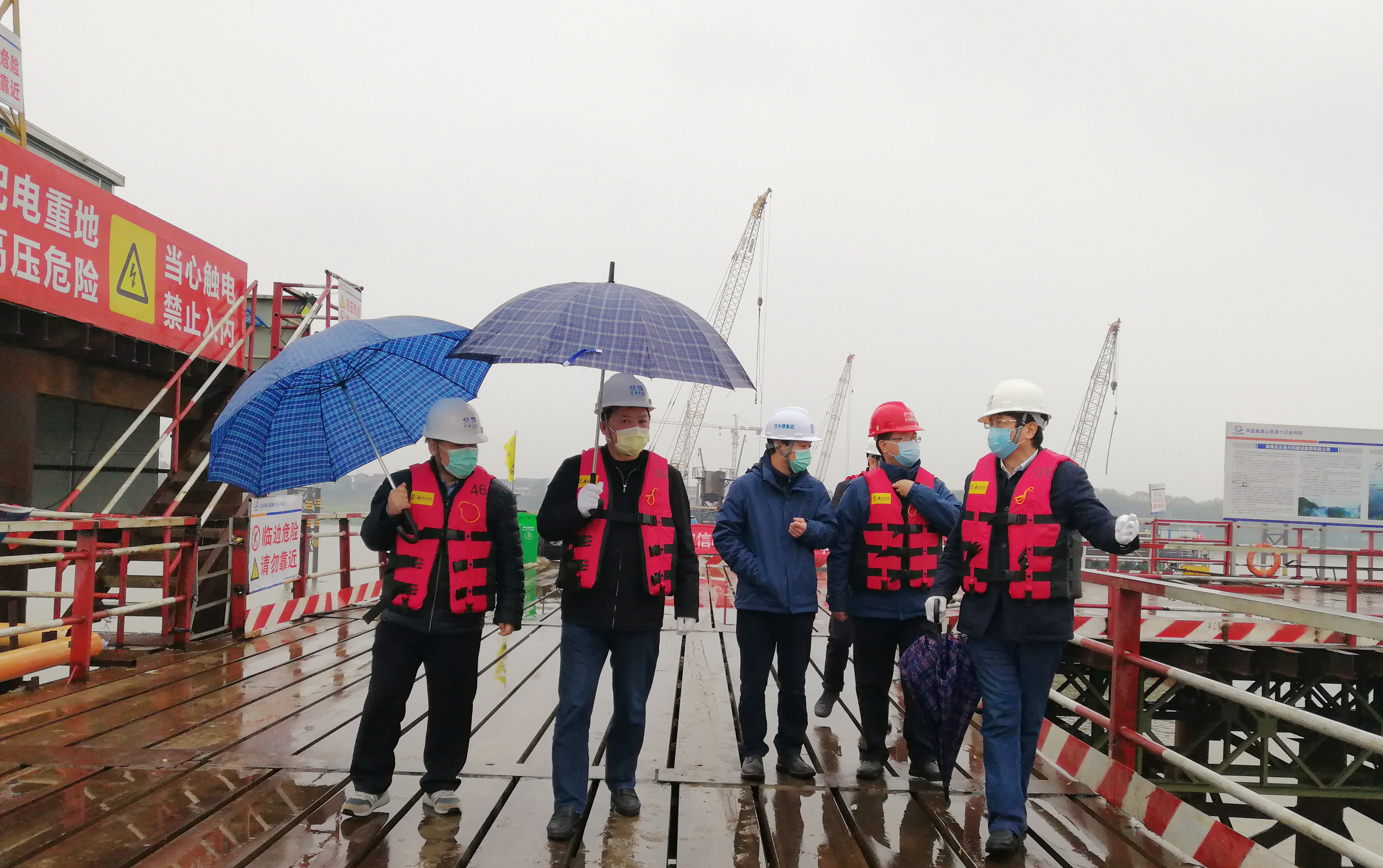 在13標(biāo),龔智輝一行來到白泥湖湘江特大橋東岸棧橋和施工平臺,詳細詢問了解項目當(dāng)前疫情防控措施的落實情況和項目復(fù)工建設(shè)進度情況。龔智輝強調(diào),做好疫情防控工作責(zé)任重大,要堅持把疫情防控作為當(dāng)前最重要的工作來抓,同時要統(tǒng)籌兼顧疫情防控和施工生產(chǎn),要一手抓疫情防控一手抓項目生產(chǎn),在打好疫情防控阻擊戰(zhàn)同時確保完成工程建設(shè)各項目標(biāo)任務(wù),確保兩手都要硬、兩“戰(zhàn)”都要贏。特別是現(xiàn)階段,要清醒認(rèn)識項目施工生產(chǎn)方面的困難和挑戰(zhàn),精準(zhǔn)把握項目推進過程中的重點難點問題,科學(xué)組織施工,合理分配工期,加大人力物力投入,加快建設(shè)進度,抓好安全生產(chǎn),必須完成四月底之前主墩全部出水的節(jié)點目標(biāo)要求,確保工程按期保質(zhì)完成。