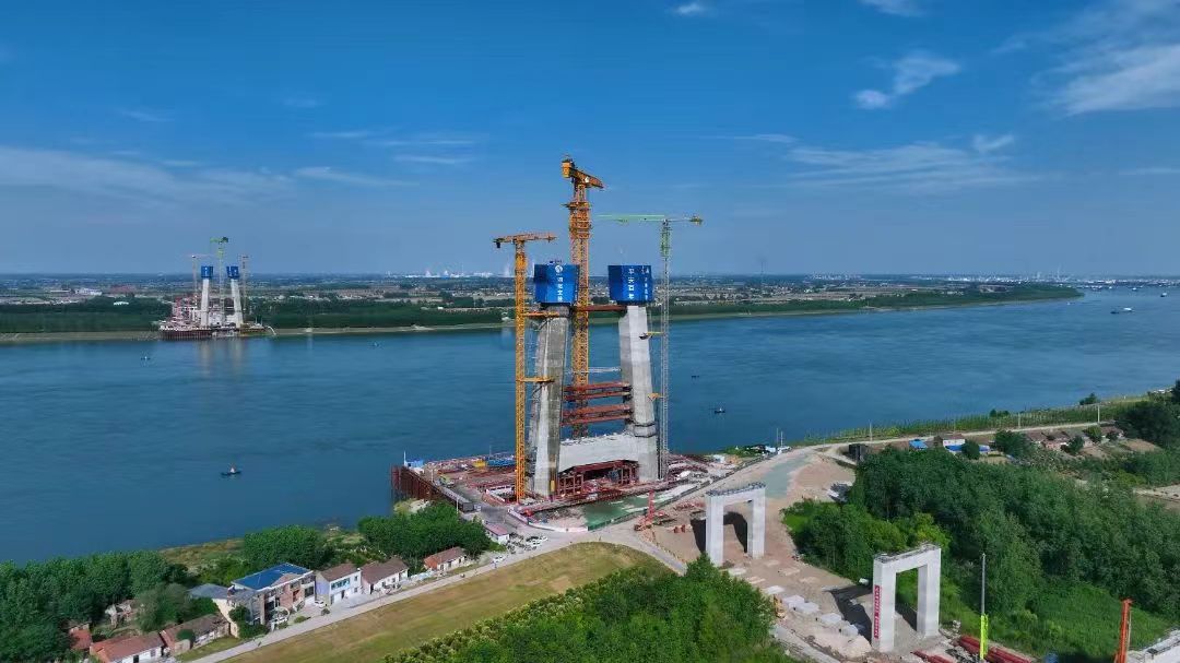 觀音寺長(zhǎng)江大橋南岸索塔破百米大關(guān)